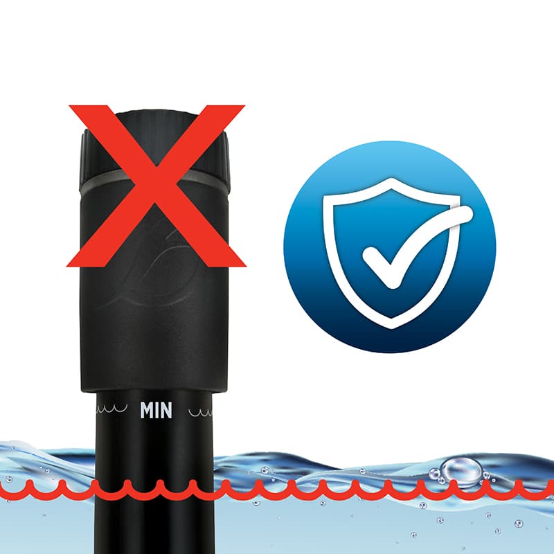 Para evitar contratempos, os aquecedores de aquário devem ser equipados com recursos de desligamento automático de segurança. Os aquecedores da série T incluem os seguintes recursos: Assim que são expostos ao ar, o desligamento de segurança corta automaticamente a energia do aquecedor para evitar superaquecimento e danos.